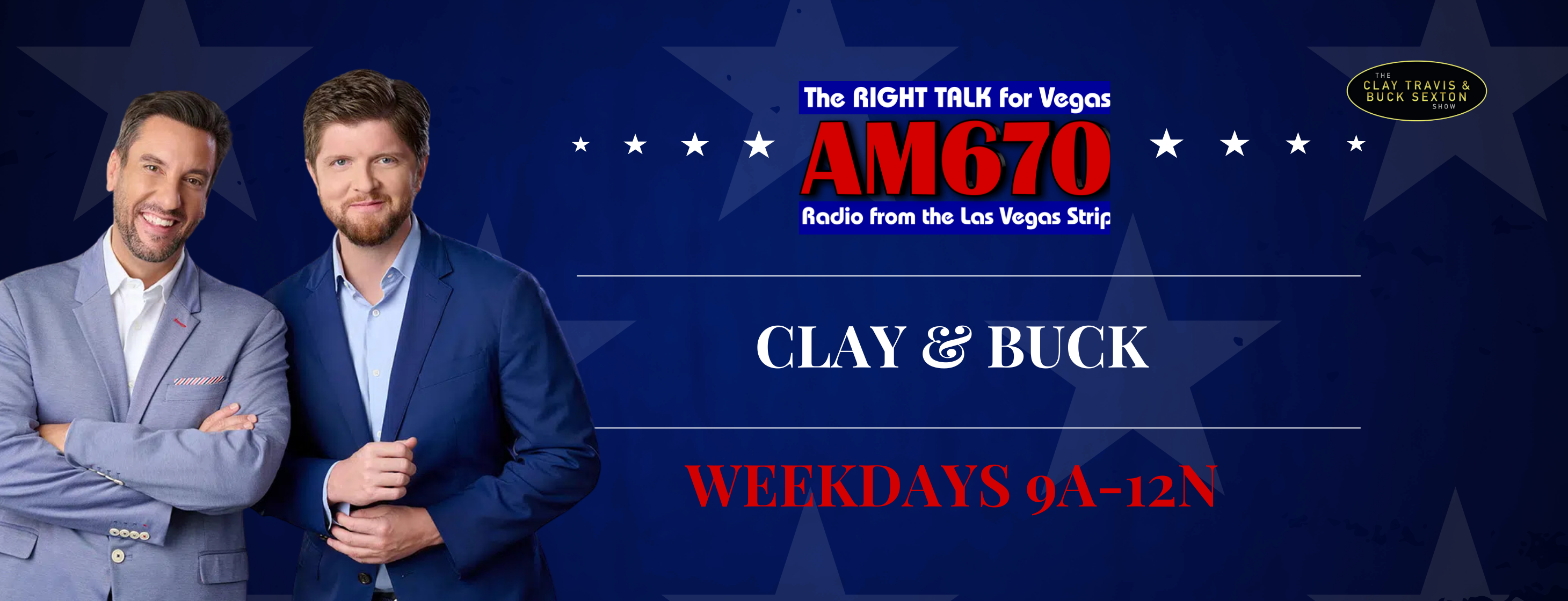 Clay Travis and Buck Sexton host The Clay Travis & Buck Sexton Show, a new three-hour talk radio program launching June 21, 2021 on radio stations nationwide.